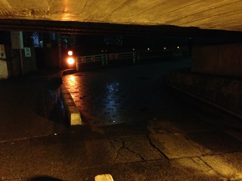 ちょうど赤線で引いたところがガード下。小さい道が出口と入口にあるのがわかる。