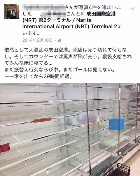 一方、成田空港では逆に帰れない人でカオス状態になっていた。