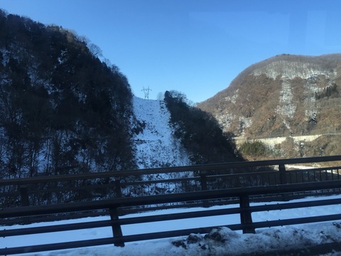 いい感じの山間を進んでいきます。道に雪が積もっているだけでやっぱり興奮。