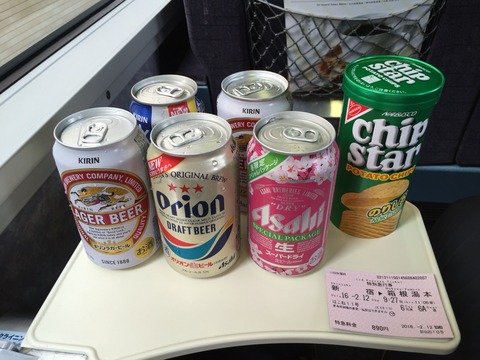電車内で飲むには在来線では敷居が高い。飲むことはできてもツマミまでは展開しずらい(机がない)。