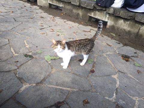 「高尾山ヤマネコ」発見!ケーブルカーでラクしたカップルに因縁つけて、目つきが鋭いのは高尾山ヤマネコの特有らしい。