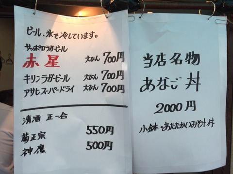 名物はあなご丼とのこと。ビールを氷で冷やしてるんだって!?しかもサッポロ赤星を扱っているようです。