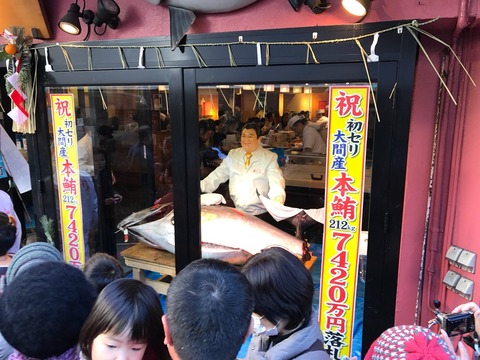 移転が延期になり、今年も築地市場で初せりが行われた。そして毎年話題になるのがこれ。